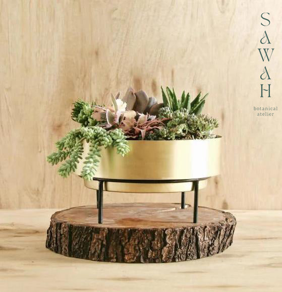 Add some green accent to your living space. Featuring a simple minimal round design attached to mini metal stand. This chic metal planter surely adds some modern accent and charm to your indoor space. Perfect to host your succulent , flowers and cacti collection.