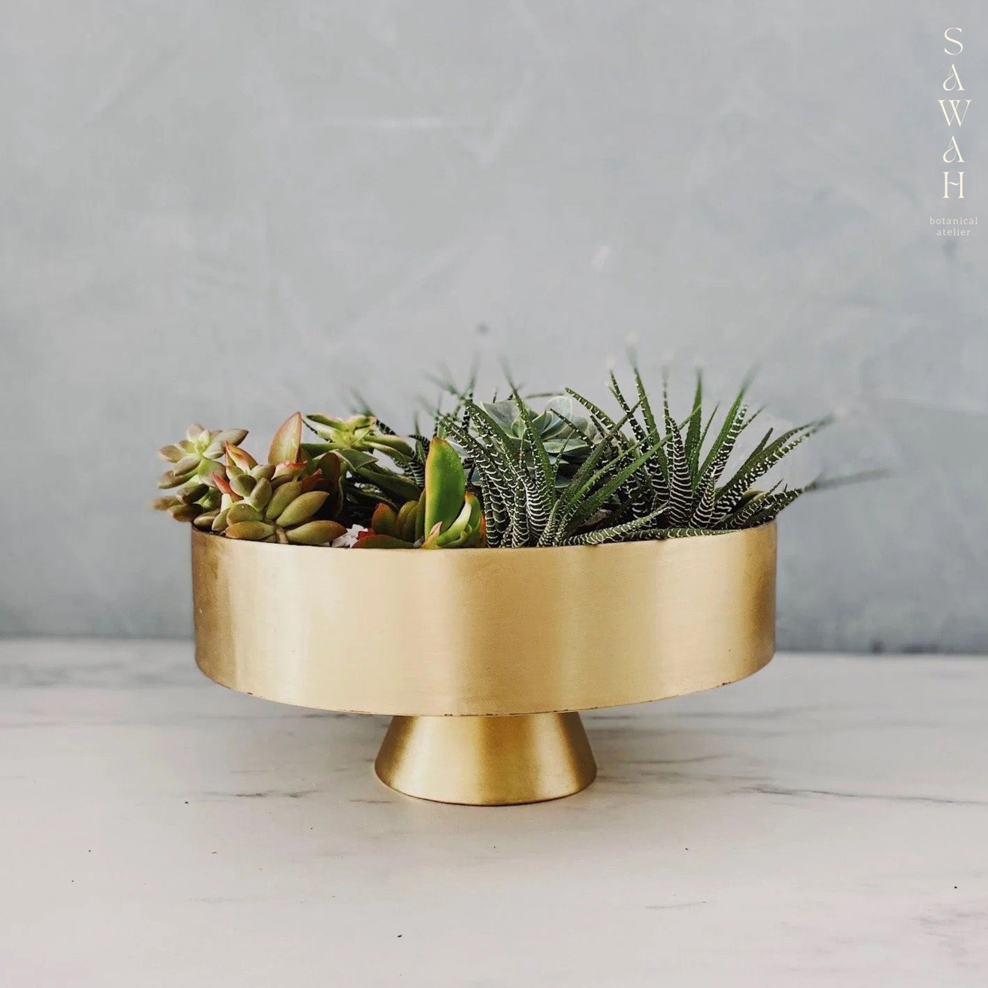 Rola Mid Century Shallow Cylinder Succulent Brass Bowl Vase
